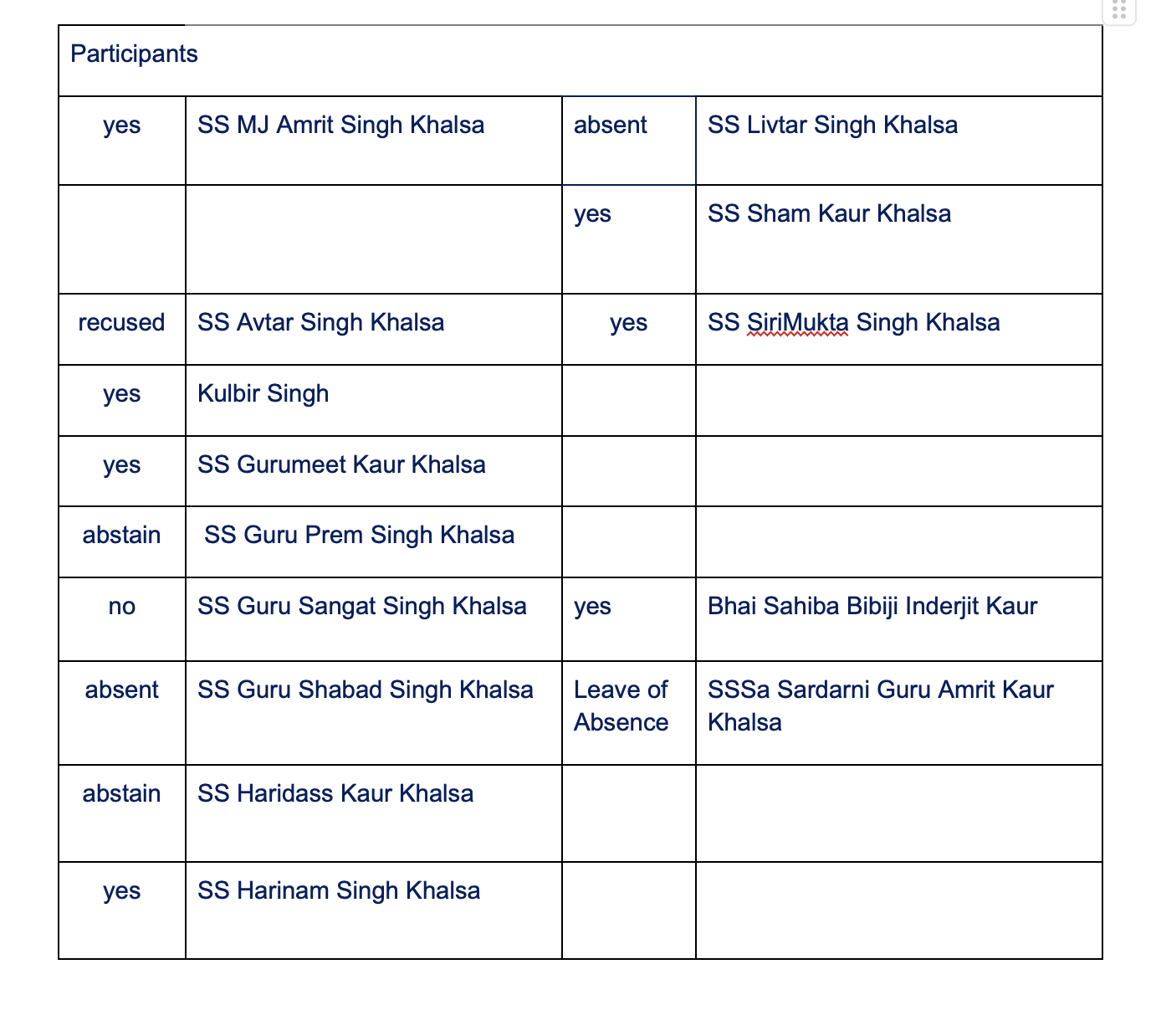 Whereas the Siri Sikdar Sahiba has also recommended that Sardarni Sahiba Prem Kaur Espinosa’s status be changed from Acting Secretary General to Secretary General it is therefore
